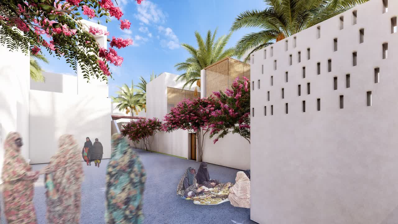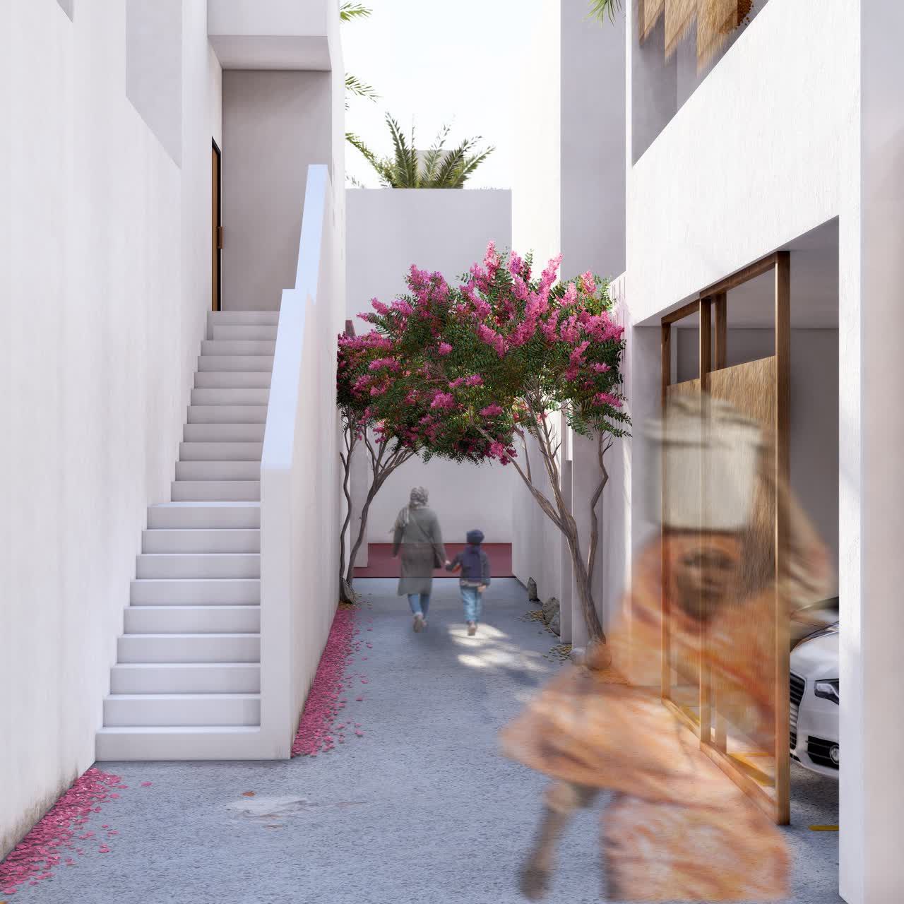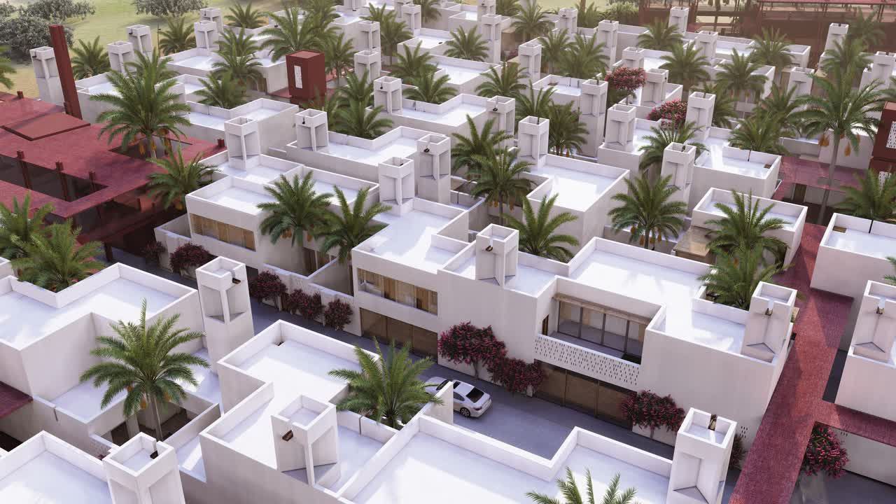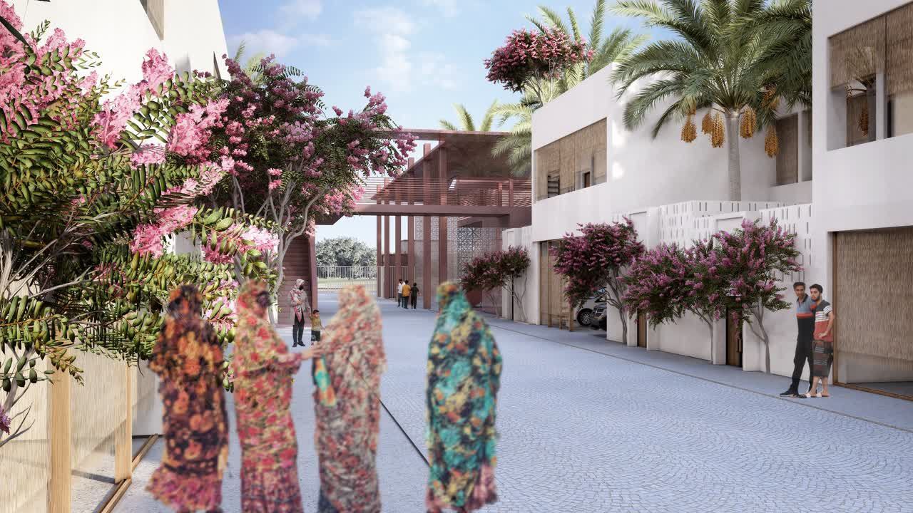 کلیت پروژه، محله‌ای پیاده‌مدار است که با یک معبر اصلی در میانه، به دو بخش شمالي جنوبى تقسيم‌شده است. بافت‌ مبتنی ‌بر كوچه‌هايي شرقى-غربى براى هدايت باد مطلوب و برقرارى كوران است. كوچه‌ها باريك يا پهن می‌شوند تا در جاهاى پهن‌تر امكان تشكيل فضاهاى جمعى برای تجمع زنان، كودكان و گعده‌های شبانۀ مردان را فراهم ‌كنند. كوچه‌هاى شرقى-غربى در دل خود به‌صورت نامحسوس، امكان دسترسى‌های ضروری همچون آمبولانس و آتش‌نشانى را براى تك‌تك خانه‌ها برقرار می‌كنند.
