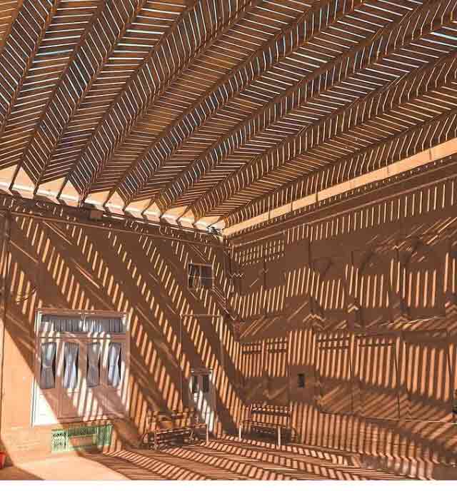 ترکیب «رقصنده با سایه‌­ها» متعلق به ایده طراحی- ساخت یک پوشش چوبی متحرک است که در نمونه اول با طراحی-ساخت یک سقف چوبی ثابت شروع شد و در گام بعدی با طراحی- ساخت یک نمونه باز و بسته شونده ارتقا یافت. دغدغه ایجاد چنین پوشش هایی تامین سایه در فصول گرم در فضاهای باز برای اقلیم‌های نیازمند ایجاد سایه است. از گام‌های ابتکاری این پروژه، شگرد استفاده از چوب های نواری چند لایه چسبی برای ایجاد پروفیل‌های مقاوم و منحنی شکل با استفاده از کمترین حجم چوب و بدون قالب است. اتخاذ این گام سبب شد ایجاد پوشش بدون دورریز چوب انجام شود. از این فناوری می‌توان در پوشش‌های الحاقی سبک جهت مناسب سازی و اجتماع پذیرتر نمودن فضاهای باز بناهای تاریخی به‌منظورِ ایجاد شرایط آسایش بیشتر استفاده کرد.